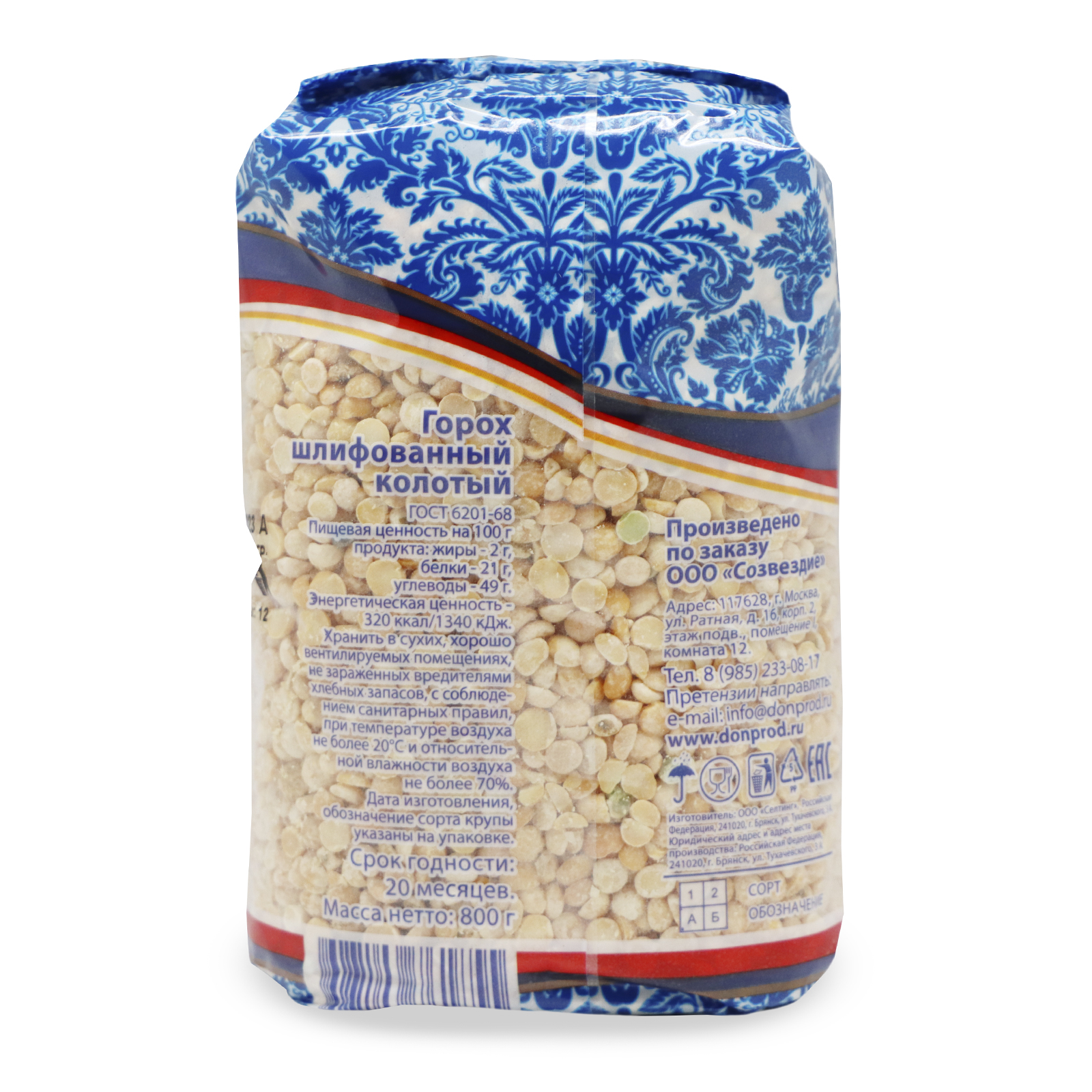 Горох колотый ГОСТ в пакете 800 гр /ДОНСКАЯ КУХНЯ ТМ/