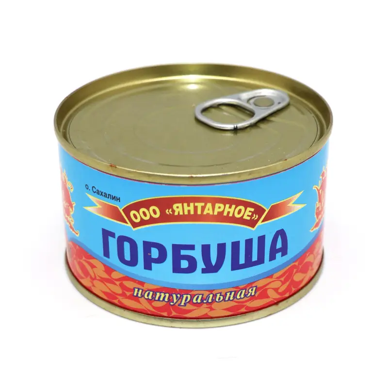 Горбуша натуральная ГОСТжест/банка ключ 225 гр /ЯНТАРНОЕ ТМ/